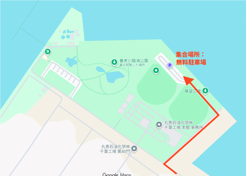 16:00~18:30 養老川海浜公園駐車場(オリジナルメーカー釣り公園の駐車場ではないので注意!)